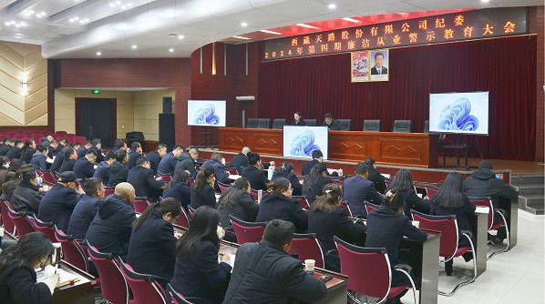 ????? 為深入貫徹落實黨的二十屆三中全會精神,進一步推進黨風(fēng)廉政建設(shè),12月9日,西藏天路股份有限公司紀委召開2024年第四期廉潔從業(yè)警示教育大會,公司黨委書記、董事長頓珠朗加參加會議并講話,黨委專職副書記、董事、工會主席西虹主持會議。