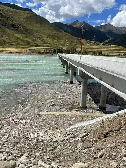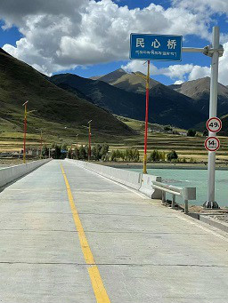龍珠崗大橋是架起墨竹工卡縣扎雪鄉(xiāng)龍珠崗村與林周縣阿朗鄉(xiāng)布崗村的重要通道,大橋全長0.824公里,其中橋梁總長308米。該大橋是連接一河兩岸群眾生產(chǎn)生活的主要通道,是鞏固拓展脫貧攻堅(jiān)成果同鄉(xiāng)村振興有效銜接、助力美麗墨竹工卡建設(shè)的有力舉措。龍珠崗大橋的通車,使墨竹工卡縣龍珠崗村和林周縣布崗村之間的通行時(shí)間從原先的一個(gè)小時(shí)縮短至30分鐘,有效改善當(dāng)?shù)卮迕癯鲂袪顩r,對(duì)于促進(jìn)區(qū)域經(jīng)濟(jì)發(fā)展具有重要意義。