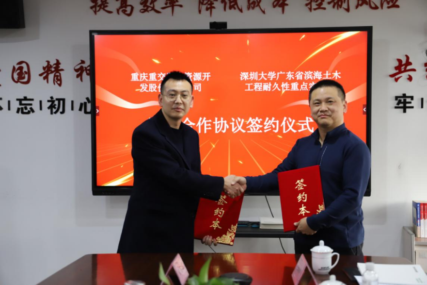 2026年1月5日,重慶重交再生資源開發(fā)股份有限公司與深圳大學廣東省濱海土木工程耐久性重點實驗室在重慶重交隆重舉行戰(zhàn)略合作簽約儀式。雙方圍繞低碳建材、固廢資源化利用、智慧城市、建筑碳中和等重點領(lǐng)域,開展全方位、深層次的產(chǎn)學研合作,共同構(gòu)建長期穩(wěn)定的戰(zhàn)略伙伴關(guān)系。
