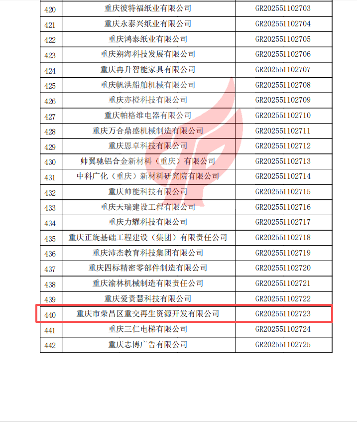 近日,重慶市榮昌區(qū)重交再生資源開發(fā)有限公司傳來捷報,成功通過2025年高新技術(shù)企業(yè)復(fù)審,延續(xù)了2022年首次認定后的高企資格。這一成果是國家對公司持續(xù)創(chuàng)新能力與技術(shù)實力的權(quán)威認可,彰顯了榮昌重交在再生資源領(lǐng)域的行業(yè)競爭力。