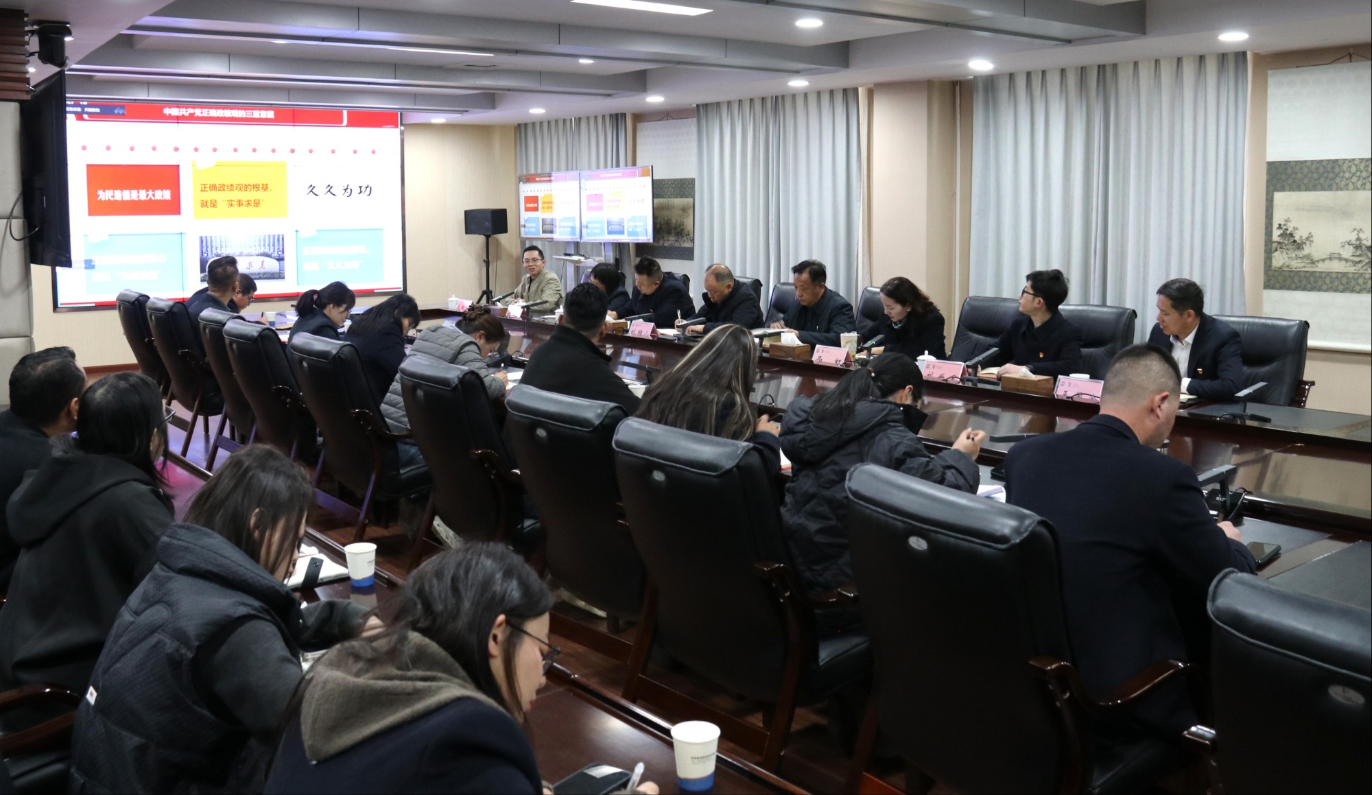 公司在家領(lǐng)導(dǎo)班子成員參加開班式,并在黨員活動(dòng)室集中學(xué)習(xí)。