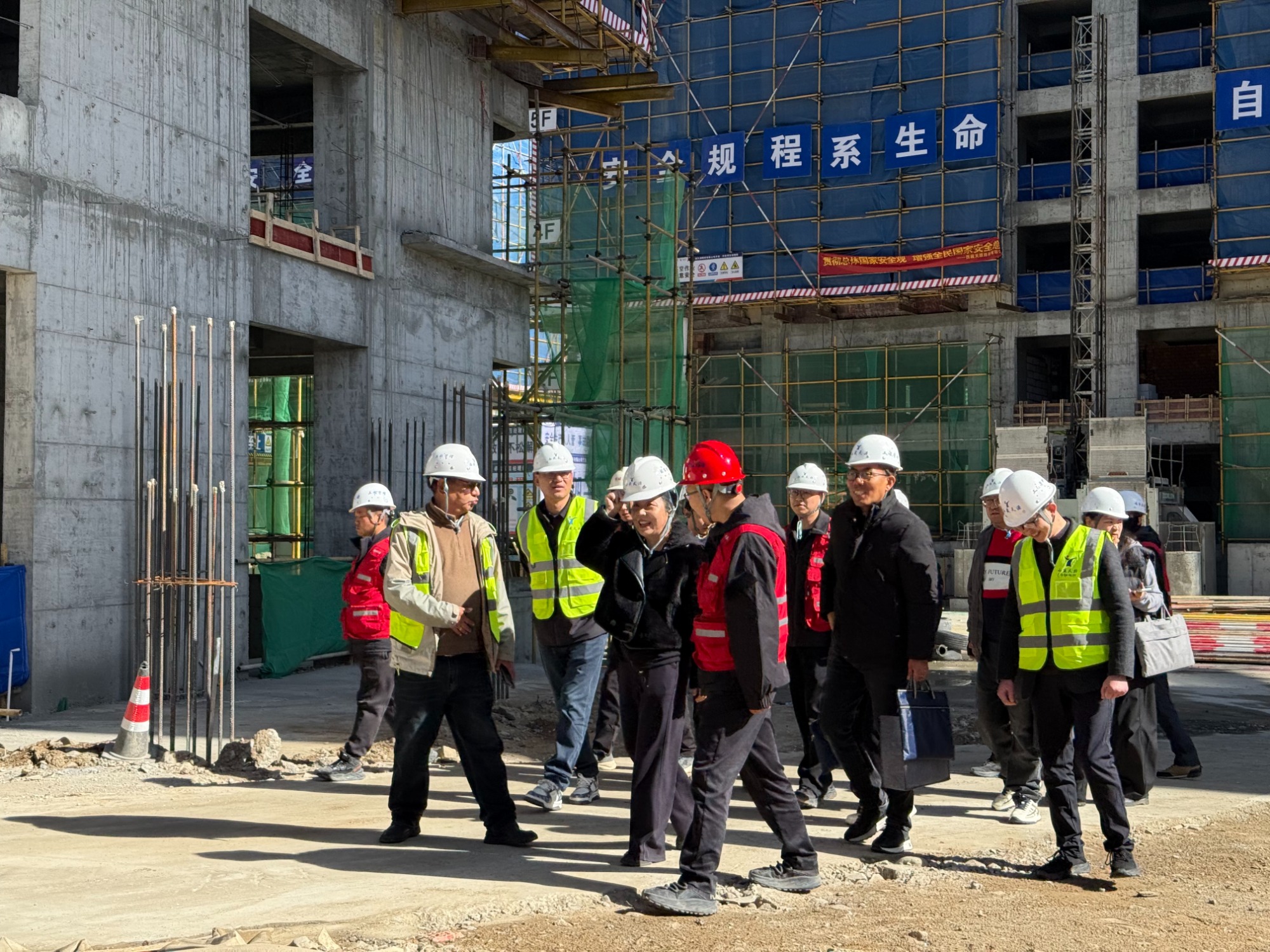 點擊量:1932026年4月23日,藏建集團黨委委員、副總經(jīng)理白珍蒞臨天創(chuàng)·卓吉項目施工現(xiàn)場檢查指導工作。公司副總經(jīng)理劉世君、天源公司執(zhí)行董事李浩全程陪同。 檢查組一行深入施工現(xiàn)場,重點查看了施工組織、工序管理及安全文明施工落實情況。白珍對項目現(xiàn)場管理秩序、安全防護措施及整體施工形象給予高度肯定,認為項目管理體系運行有效,現(xiàn)場管控到位。 在資料檢查環(huán)節(jié),檢查組系統(tǒng)查閱了民工工資發(fā)放臺賬、計量支付